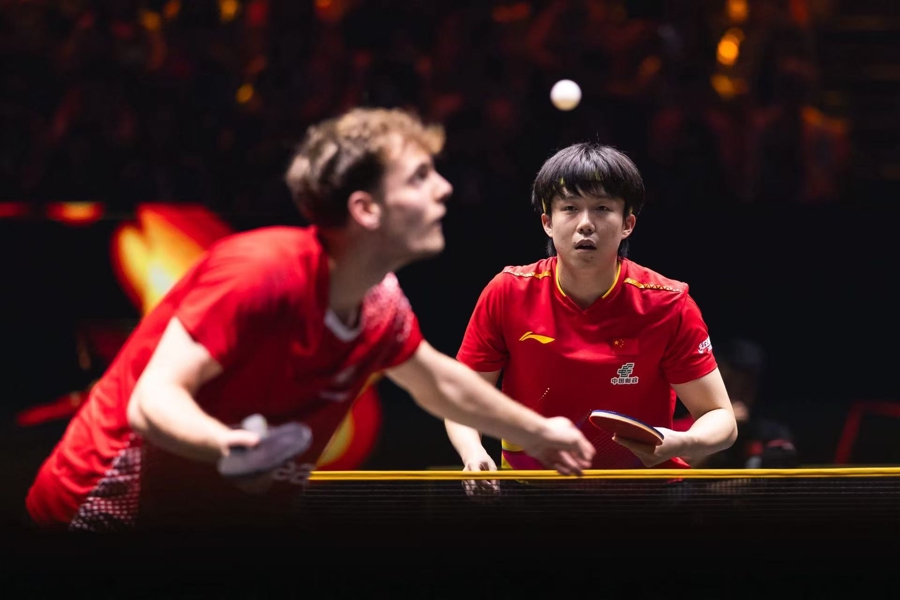 这是王楚钦自巴黎奥运会后首次三线作战,10月1日也是他第一个三线作战的比赛日。下午2时许,王楚钦在一场五局激战险胜19岁的波兰选手米洛什·雷德齐姆斯基,晋级男单十六强;傍晚6时,又与林诗栋配合,3比0横扫瑞典男双组合法尔克/卡尔森。紧接着三个小时后,与孙颖莎踏上混双赛场。