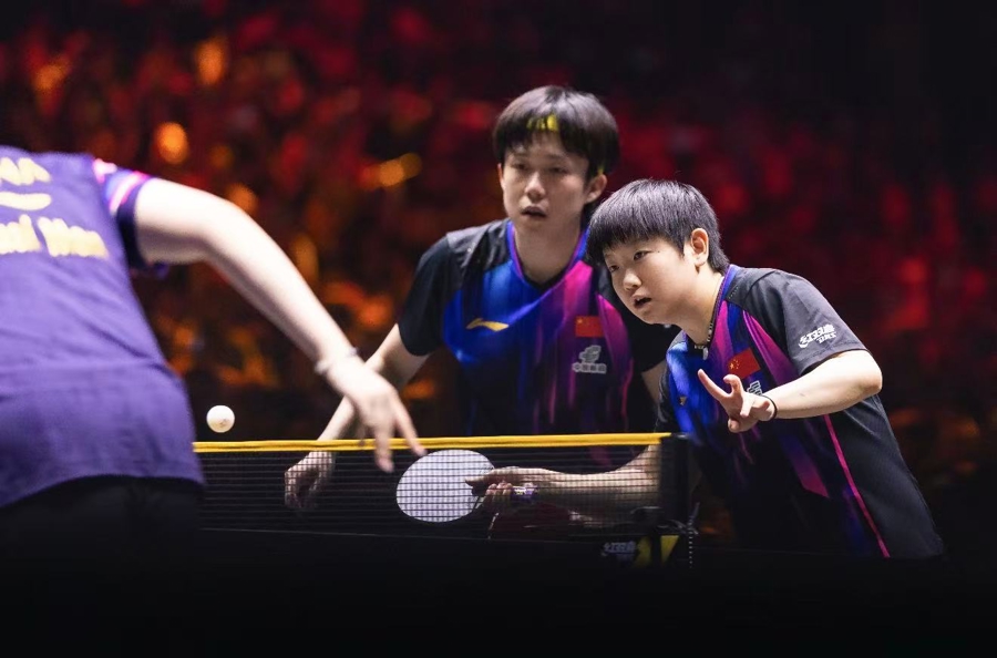 赛后,孙颖莎特别夸奖了搭档:“确实大头做得非常好,这是他今天第三场比赛了。整场来说,他的调动、他的比赛感觉都不错。确实可能第三场比赛,他的状态也打开了。我还是多辅助,让他多得分。”