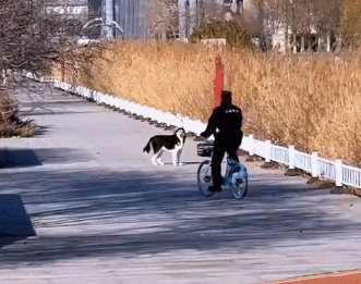 结果二哈跟一条鲶鱼一样,撒丫子就跑了出门。保安大叔发现跑步根本撵不上,就扫了辆共享单车,蹬起了风火轮!