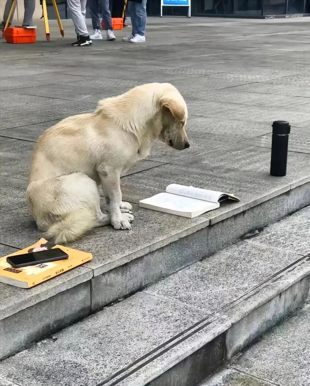 湖北某高校前的图书馆,一只狗子正在专心致志地看书,有的学生从它身边走过,有的学生熟练地拿出手机拍照,狗子都不理睬,只是看书。