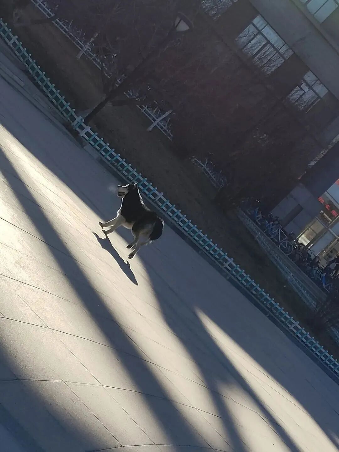 说到狗子去图书馆,不得不说天津师范大学的这只二哈,狗狗祟祟地在校园里游荡。